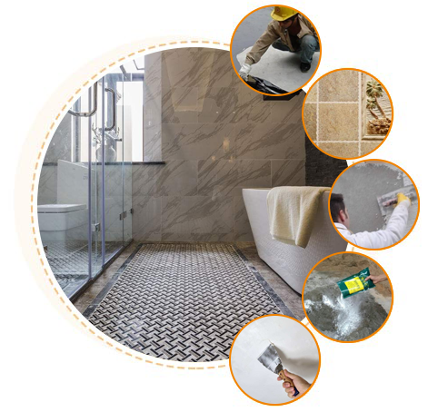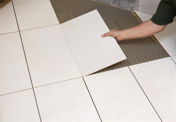 將超強瓷磚粘貼劑,直接涂刷在瓷磚、石材背面,待透明狀后,即可粘貼施工。